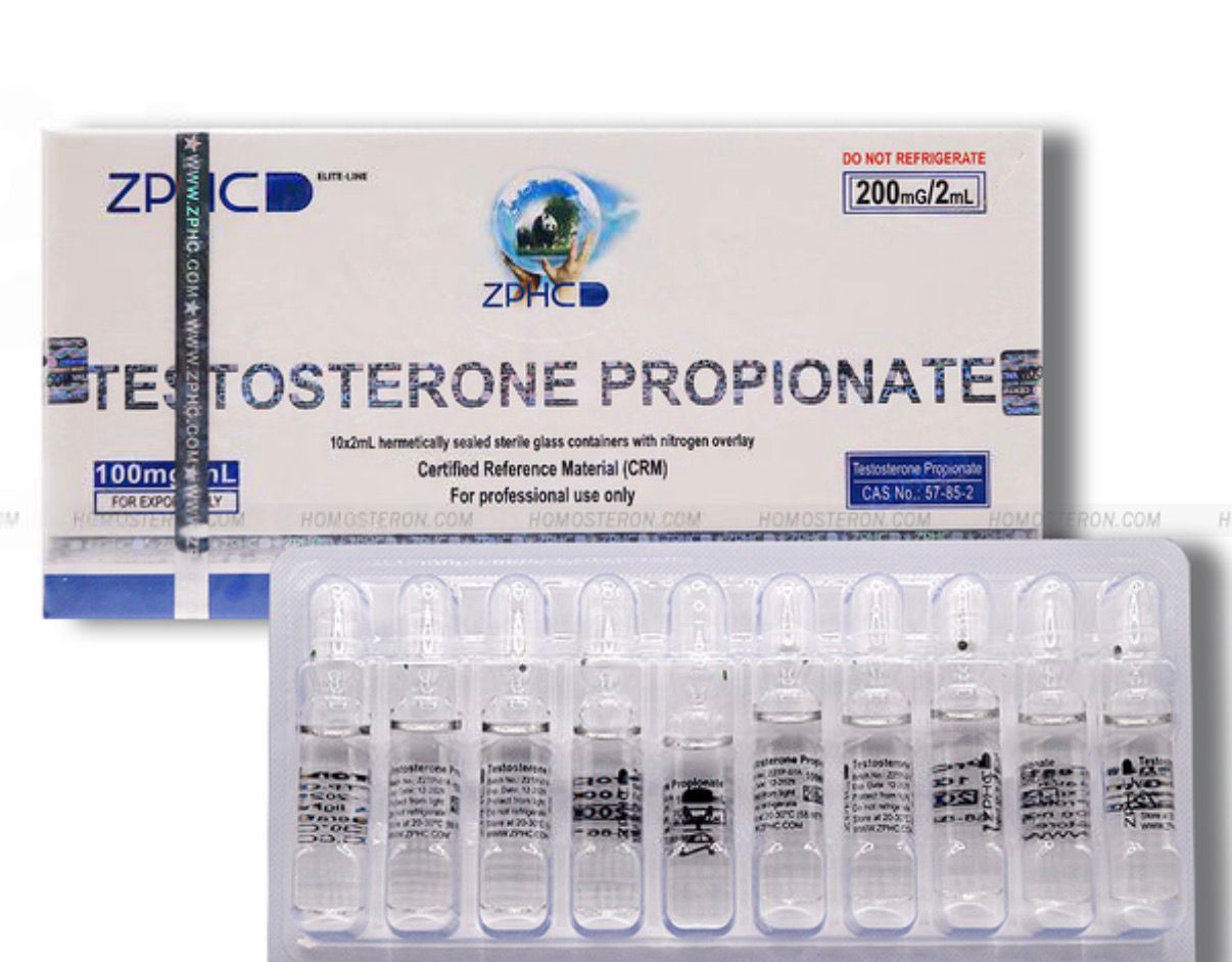 Testosterone Propionate ZPHC — 100 mg/ml (10 ampoules × 2 ml) is a short-ester injectable testosterone formulation known for its rapid absorption and fast action. Thanks to its short half-life, it allows better control over hormone levels compared to long-ester compounds.